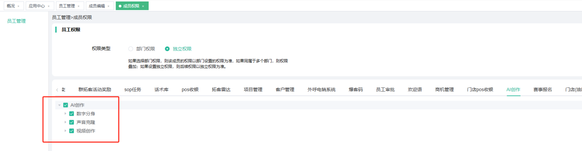 企业成员权限开启: