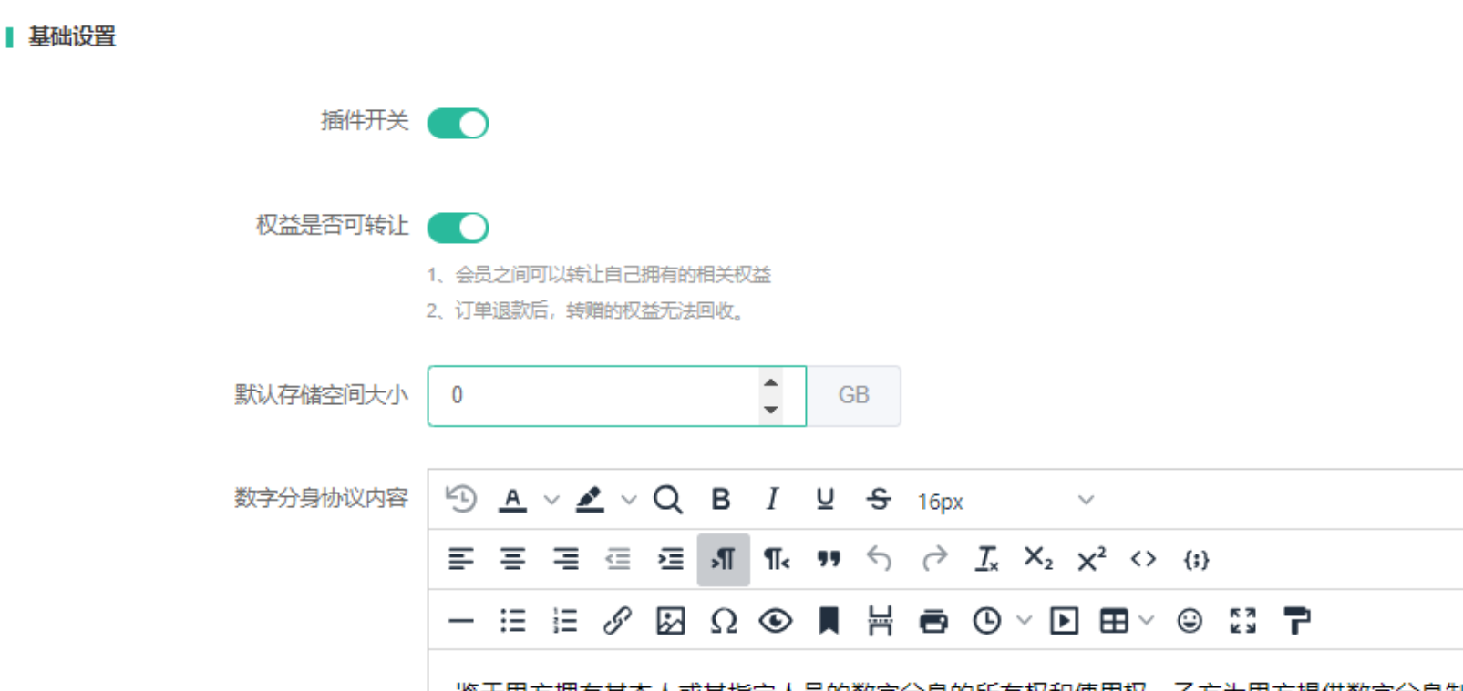权益是否可转让:开启后可将会员权益转让