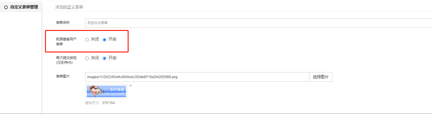 2、前端查看用户表单:是否允许普通会员前端查看。开启后,普通用户点击表单链接可以查看表单数据。关闭后普通会员查看不了,仅店铺助手管理员可以查看,前提店铺助手基础设置也勾选允许查看H5自定义表单。