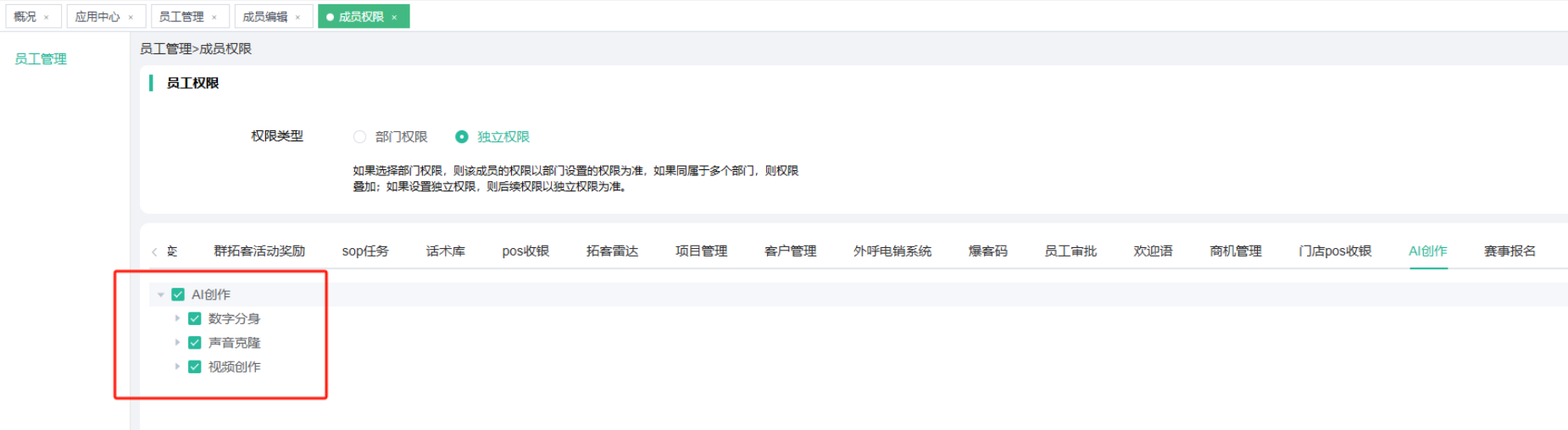 企业成员权限开启: