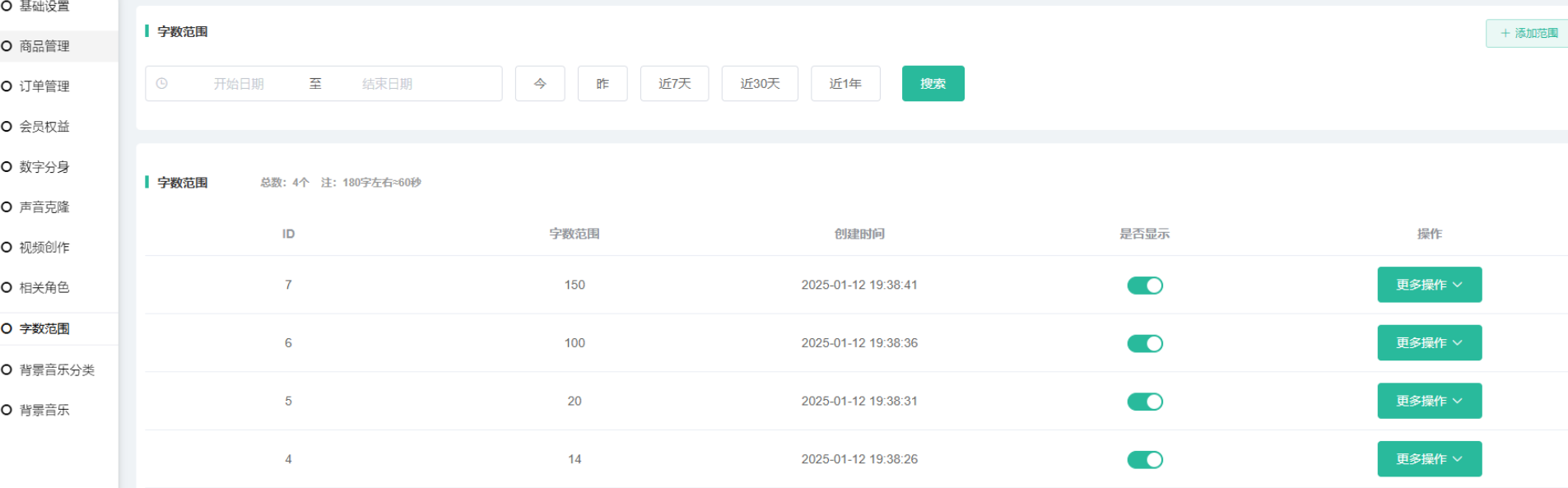 定义一个字数范围,用于前端选择可生成的视频时间